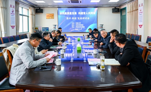 东南大学成贤学院党委副书记、副院长、纪委书记尹威,学生处处长施杰,电子与计算机工程学院党总支副书记苏力;东南大学交通学院党委副书记、副院长张航,本科生招生办公室副主任吴晓纯,自动化学院教授马旭东;镇江丹阳市教育局党委副书记、副局长马俊杰,丹阳市马相伯高级中学校长眭金祥,丹阳市珥陵高级中学校长王鹰翔,江苏省丹阳高级中学副校长李建平,丹阳市吕叔湘中学副校长张静波,丹阳市正则高级中学副校长倪杰等参加会议,共商协同发展路径,共话育人使命担当。